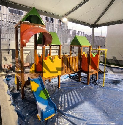 - Un tobogán de fibra de vidrio de 0.70mt de altura de 4mm de espesor.
